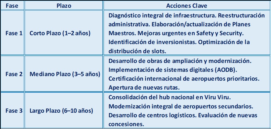 - Creación de un Centro Nacional de Operaciones Aeroportuarias para una supervisión integrada.